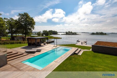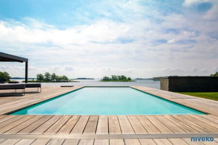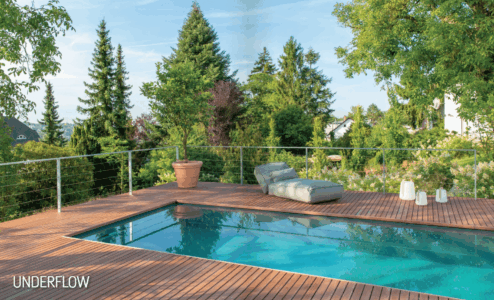 Das einzigartige Pool-Konzept Underflow mit verstecktem Poolrand unterhalb der umliegenden Terrasse. Die technische Lösung, die für höchste Funktionalität und luxuriöses Design steht, wurde von NIVEKO dank unserer umfassenden Fachkenntnis entwickelt. Entdecken Sie ein ganz neues Badeerlebnis mit dem stilvollen Überlauf Underflow.